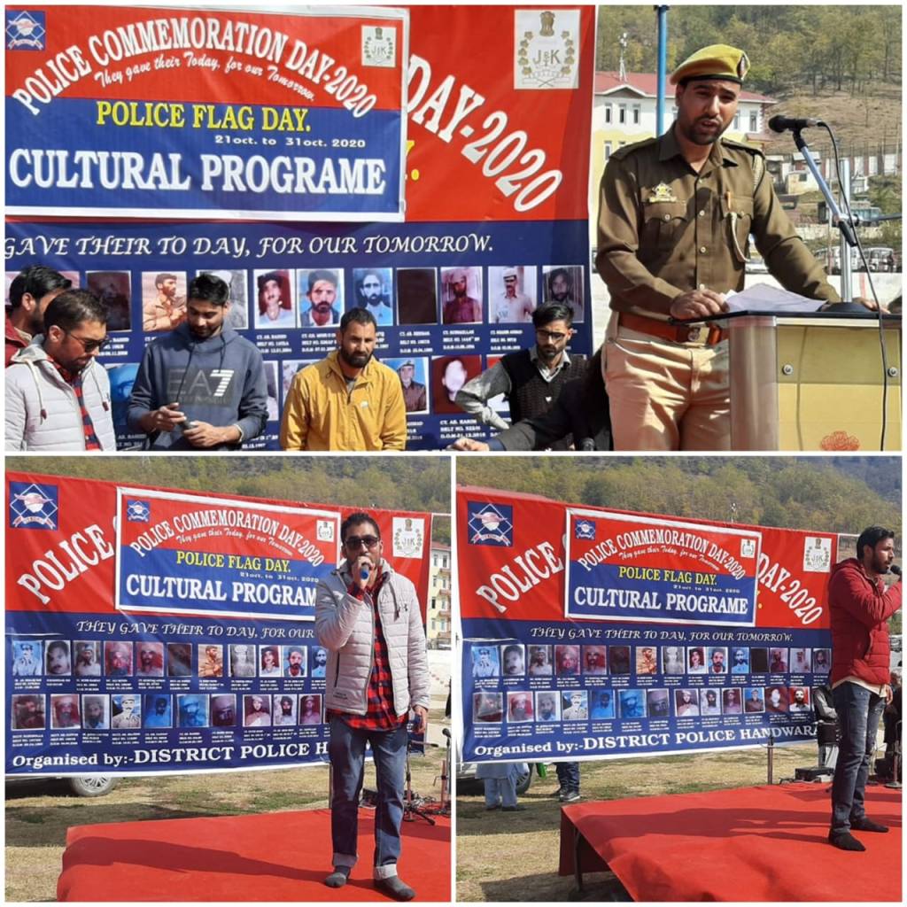 In the ongoing series of events under the banner Police Flag Day Handwara Police in the loving memory of Martyrs organized a Cultural Programme at DPL Handwara to provide a platform to the young, budding and enthusiastic artists. The event was inaugurated by DySP DAR Handwara Shri Rakeeb Malik-JKPS under the supervission of Superintendent of Police Handwara Dr.G.V.Sundeep Chakravarthy-IPS. Besides officers from CRPF, SSB and officers from civil administration, prominent citizens, youth and other dignitaries also witnessed the occasion.