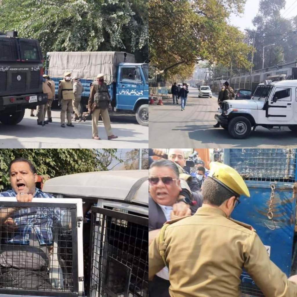 Reports said as soon as the PDP leaders tried to march for protest against Land Laws and NIA raids, they were arrested and whisked away in police vans.