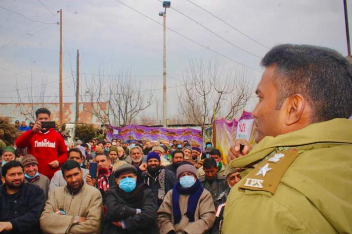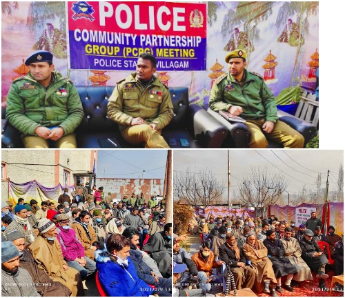 The meeting was held at Police Station Vilgam and was chaired by SP Handwara Dr.G.V Sundeep Chakravarthy-IPS besides SDPO Handwara Shri Fariz Hussain-JKPS SHO Vilgam Inspector Iftikhar Ahmad and other officers and officials were also present in the meeting.