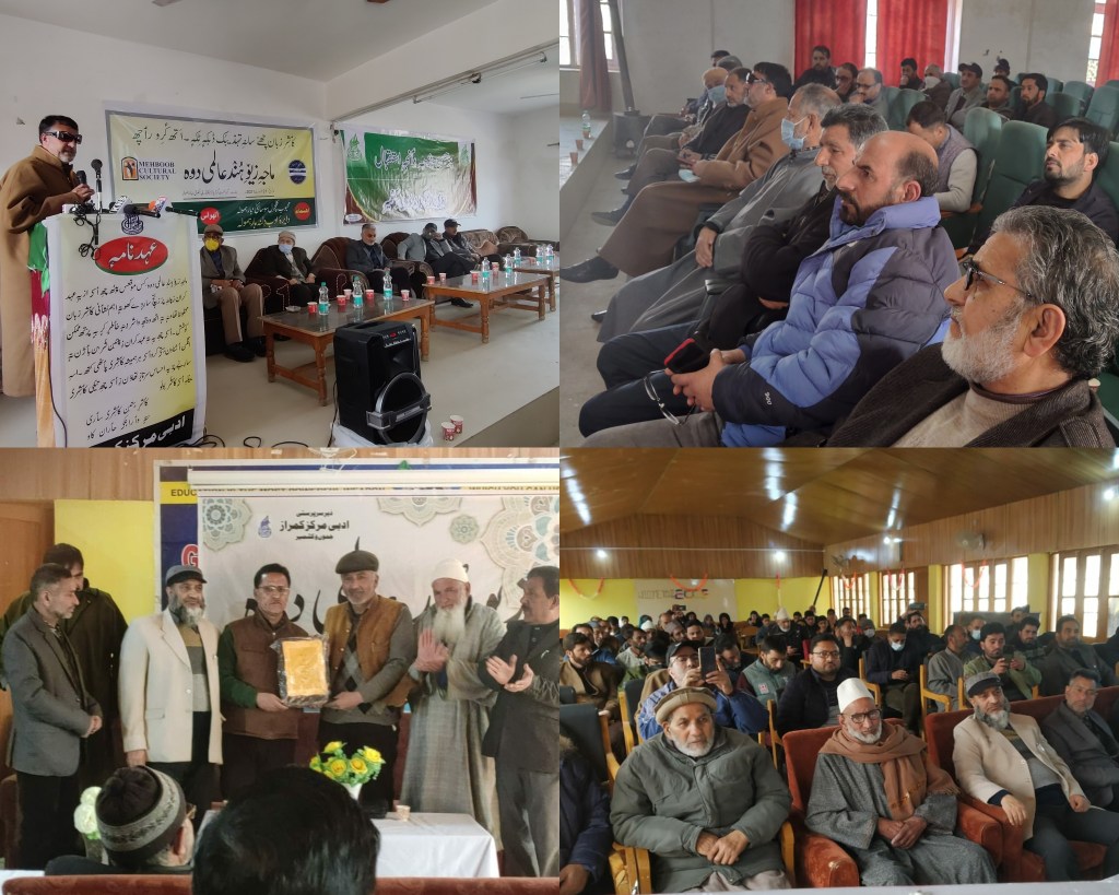 GM Zahid and Ishfaq Samoon presented two on the occasion .Mir Dachigami and Zonal Education Officer Muhammad Sayed Shah also spoke on the occasion, while Mansoor Muntazir Secretary LFB carried the proceedings.Later a two poetic session were held during the event . First session was presided by Syed Rampuri and second session n was head by Muhammad Akbar Miskeen. Children from different schools also performed during the occasion.