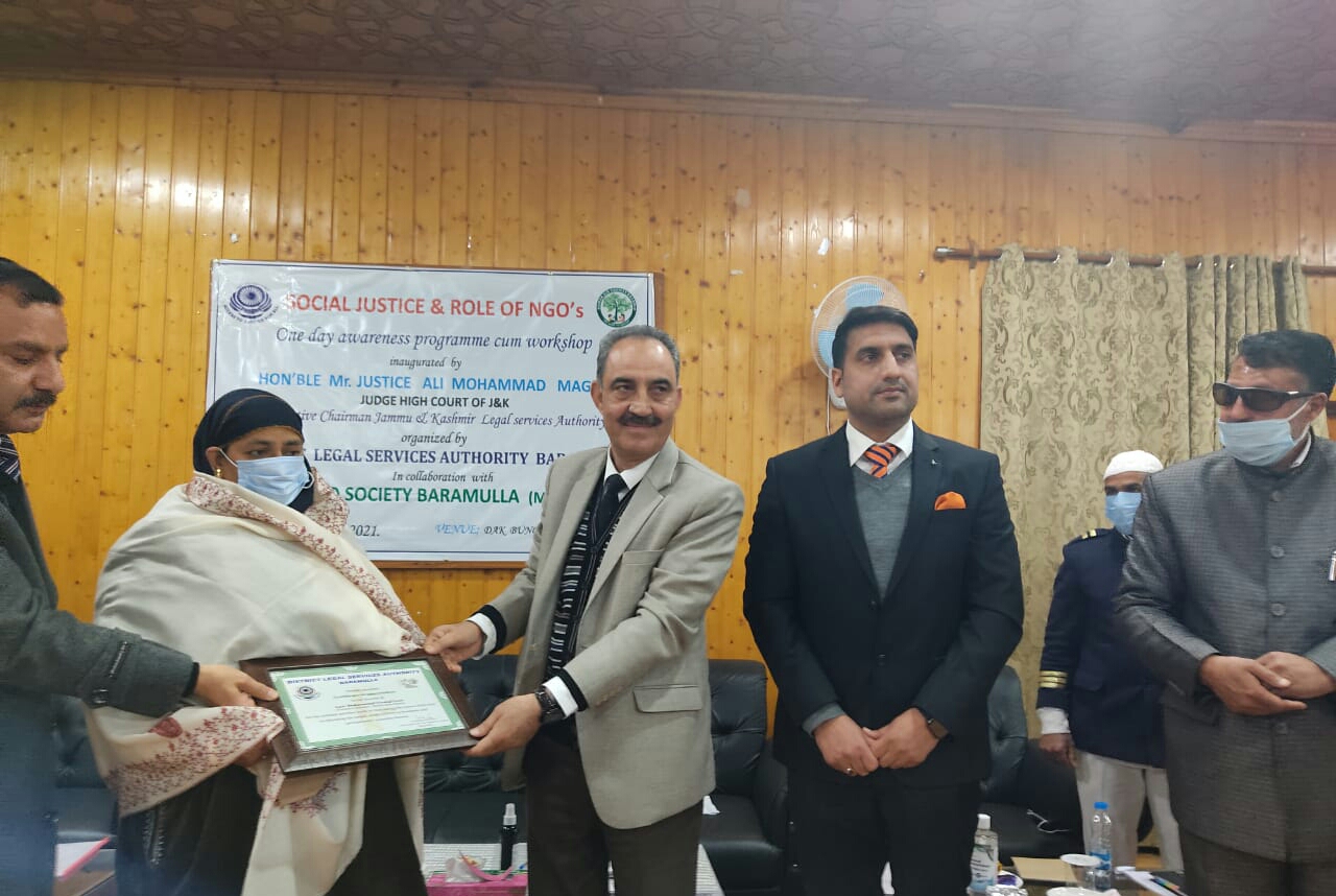 The Social Organizations who were felicitated by the District Legal Service Authority for their tremendous work in last 10 to 20 years especially who worked tirelessly during Covid-19 Pandemic are Human Aid Society (Mother NGO), J&K Yateem Foundation, JK Help Foundation, Human Welfare Voluntary Organization, Northern Blind Foundation. Besides these NGOs Govt Medical College (GMC) Baramulla and Directorate of Indian System of Medicines (ISM) were also felicitated.