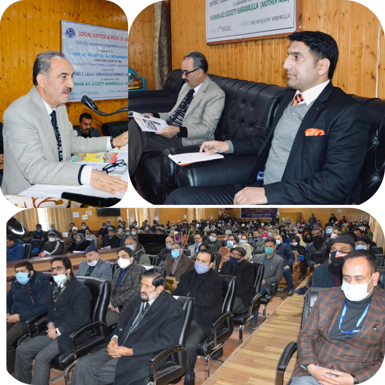 District Legal service Authority Baramulla in collaboration with Human Aid Society (Mother NGO) organized World NGO day under the theme “Social Justice and Role of NGOs’’ at Dak Bunglow Baramulla on 27 Feb 2021. On this occasion Judge Hon`ble High Court of J&K and executive Chairman State Legal Service Authority Mr Justice Ali Mohammad Magray was the Chief Guest while as Deputy Commissioner Baramulla Mr Aijaz Asad (IAS) was the guest of honour. Besides this Principal District and Session judge Mr Sanjay Parihaar, SSP Baramulla Mr Ab Qayoom. Secretary DLSA Mr Faizan-ul Haq Iqbal, Regional Manager Grameen Bank, President Bar Association Baramulla Mr Abdul Salam Rather, Chairman BWJA Haji Qaramat Qayoom and Chairman Mother NGO Human Aid Society Mr Bashir Ah Mir was also present on the occasion.