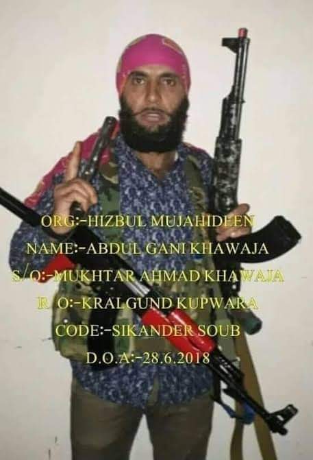 A senior police officer told Kashmir Despatch that Al-Badr chief Ganie Khawaja was killed in a gunfight that broke out on Tuesday evening in Tujjer village of Sopore.