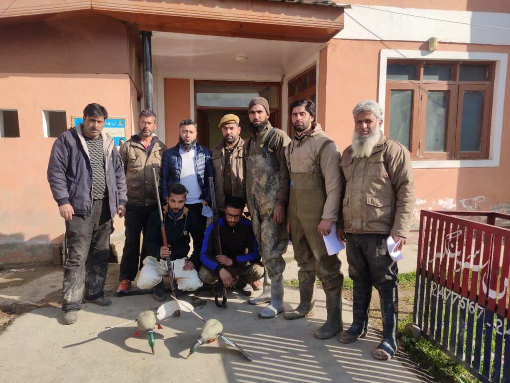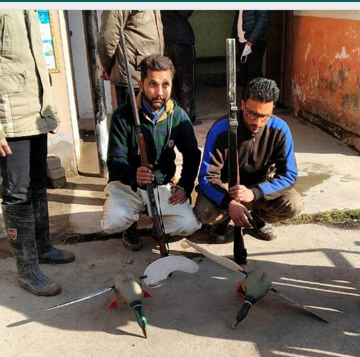 Joint Director Forest Protection Force (FPF) Kashmir, Irfan Rasool said a joint patrolling team of forest protection and wildlife officials was on routine patrolling around Narkara Wetland in the outskirts of Srinagar in Budgam district. The joint team spotted the two poachers poaching migratory birds.”